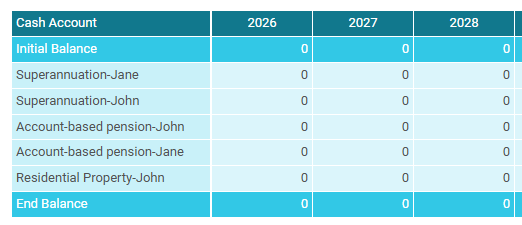 The cashflow menu shows you an in-depth analysis of your clients cashflow; including all inflows vs outflows for the financial year, the movement of money into and out of specific assets, and whether your clients are experiencing a surplus or deficit on any given year.