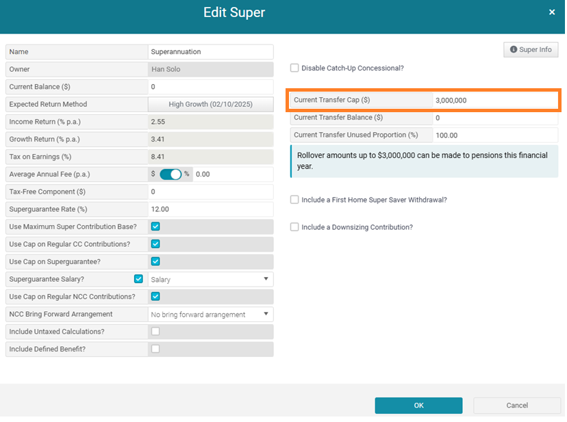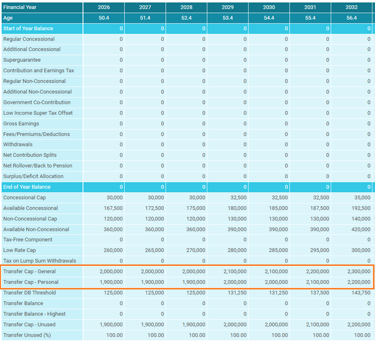 Transfer Balance Cap – This is user-defined and can be