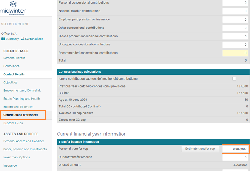 - Use cap on regular NCC contributions is similar to the CC setting, which will cap your NCC amounts per year as per legilsation if ticked.